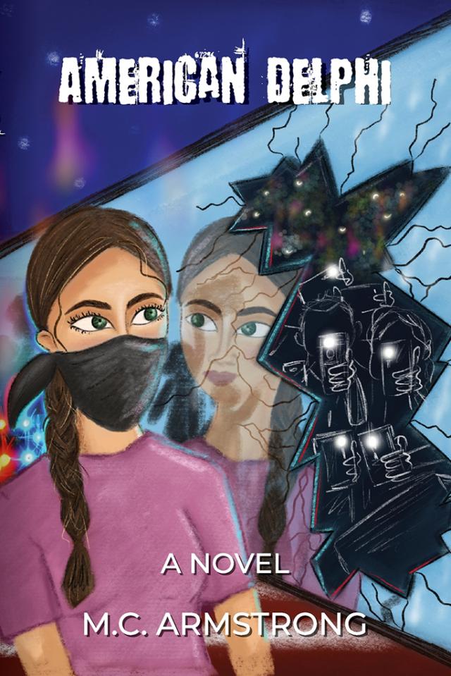 I kept walking. Now, in purple, but with the same handwriting, they said We Need Change. And I’m like, okay. Duh. But then, near the turnoff from Cedar to Byrd—right where you could see this big stack of logs against the side of Buck London’s house—there was one more phrase before I turned around and it said: American Delphi.